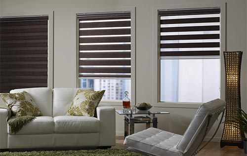 Estas innovadoras persianas son muy elegantes, su diseño conjunta secciones de tela de color y transparencias logrando una entrada de luz natural al 100% o bien obstruirla ya que son dos telas paralelas de franjas horizontales lo que con el movimiento de tus persianas Sheer, actúa como una tela franjada con penetración de luz o una tela uniforme brindándote la privacidad al 100%, además de que puedes conjuntarla hasta la parte superior logrando la entrada de más luz, son bastante funcionales y duraderas.